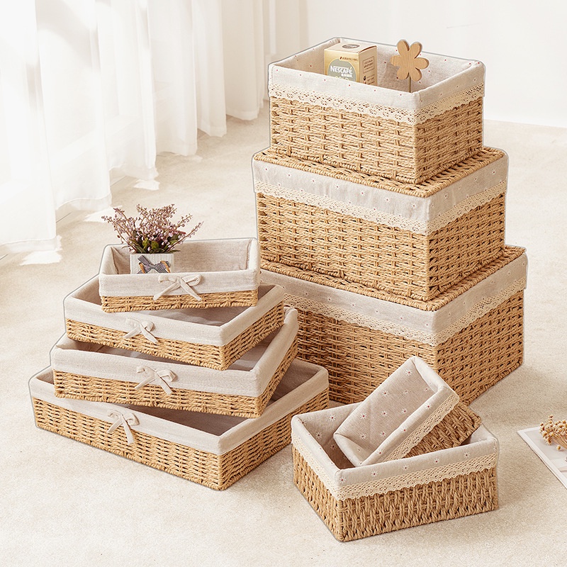 【1 SET】Keranjang Penyimpanan/ Keranjang Rotan Penyimpanan Box/ Keranjang Penyimpanan Kotak Rotan Keranjang Makanan Ring