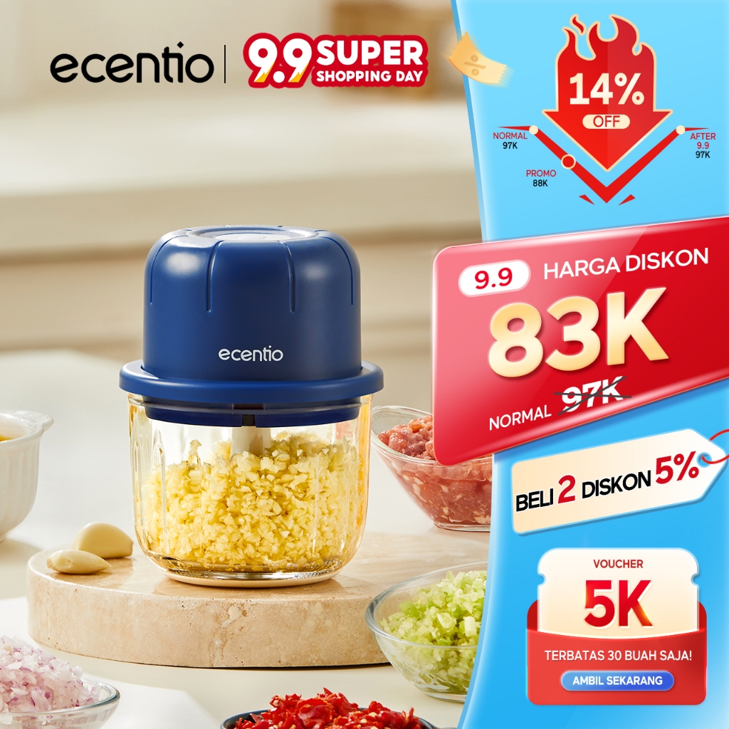 CHOPPER ECENTIO 400ML 6 PISAU PENGHALUS BUMBU PENGILING DAGING BLENDER COPER KAPSUL MINI PORTABLE GARANSI RESMI