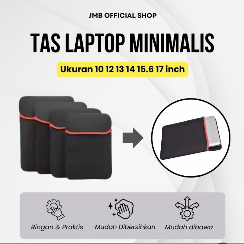 (JMB) TAS LAPTOP MINIMALIS Bahan Neoprene 10, 12, 13, 14, 15.6, 17 inch COVER ANTI GUNCANG MURMER