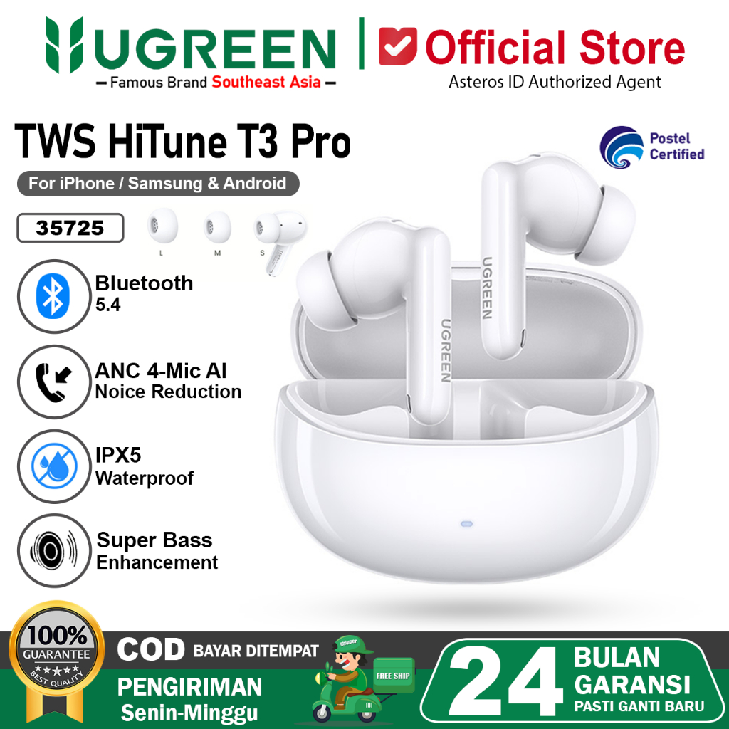 UGREEN Premium HiTune T3 Pro Earphone TWS Wireless Bluetooth 5.4 Active Noise-Cancelling 35725