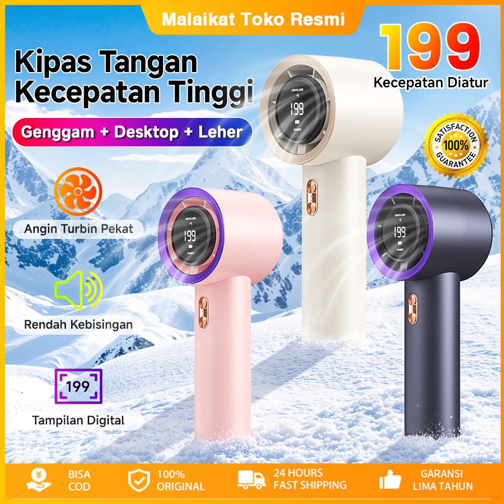 Kipas Tangan Turbo 199 Level Adjustable 20000mAh - Portabel, Bisa Digantung, Tanpa Pisau & Senyap, Layar Digital USB Rechargeable untuk Kantor/Meja/Outdoor