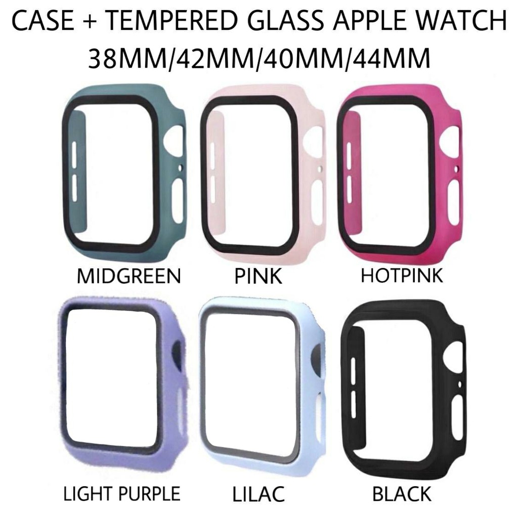 CASE FULL COVER APPLEWATCH + TEMPERED GLASS APPLEWATCH 1/2/3/4/5/6/SE/7/8 UKURAN 38MM / 42MM / 40MM / 44MM / 41MM / 45MM