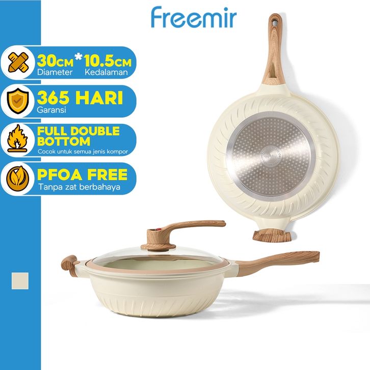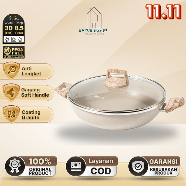 WAJAN STAINLESS STEEL FREEMIR WAJAN ANTI LENGKET WOK PAN 30CM DOUBLE BOTTOM DENGAN TUTUP MARBLE PRESTO