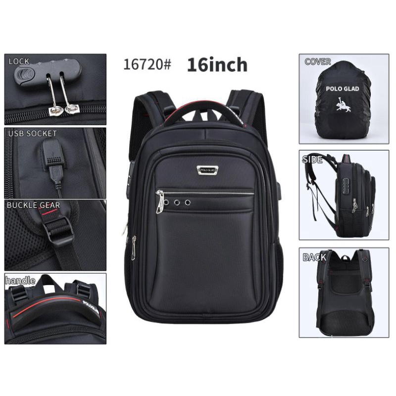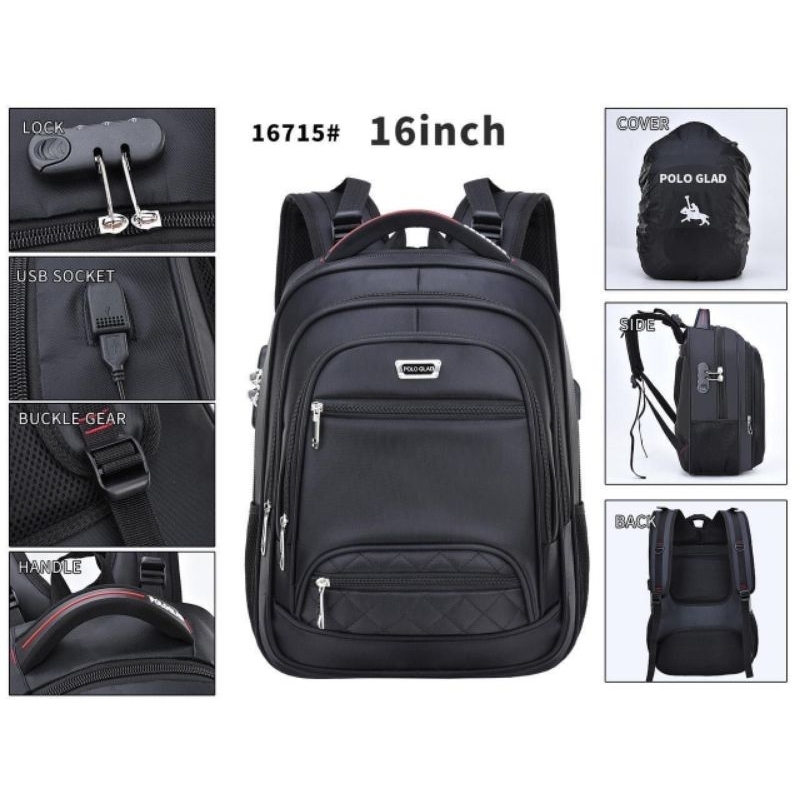 POLO GLAD Tas Ransel Sekolah 16 Inch Backpack Pria Wanita Original Polo