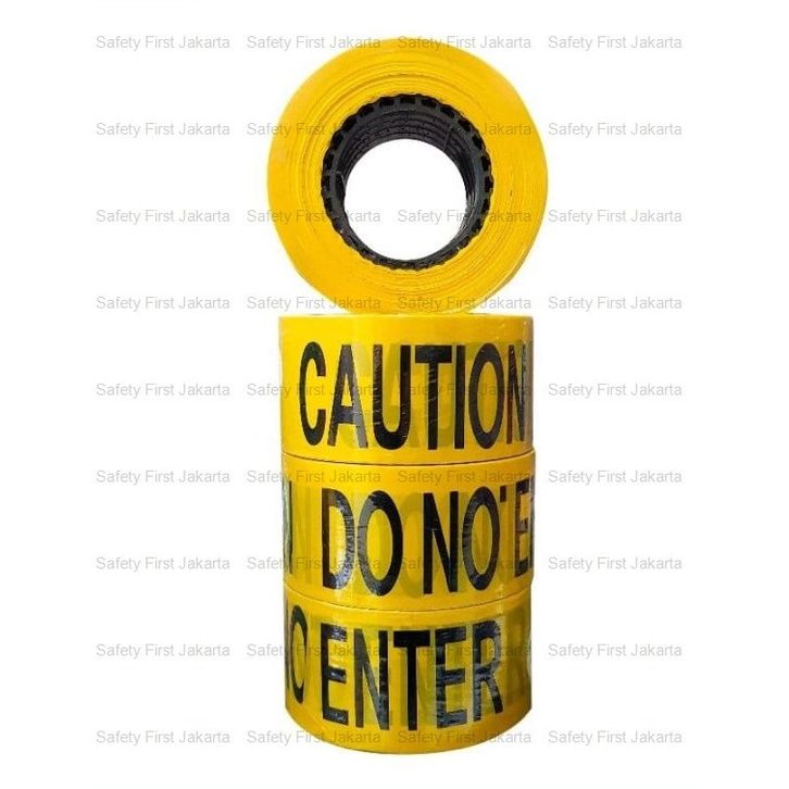 POLICE LINE PEMBATAS JALAN PLASTIK TULISAN CAUTION DO NOT ENTER UKURAN 3" 300 atau 500 METER