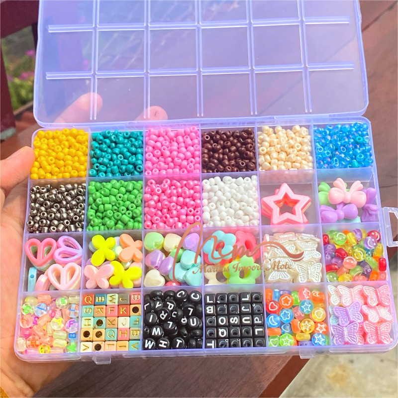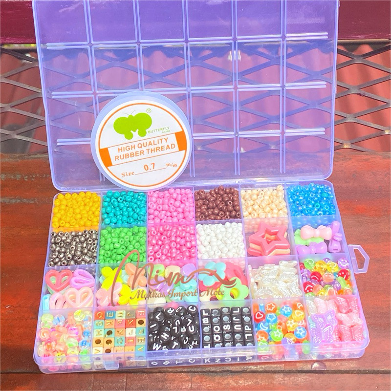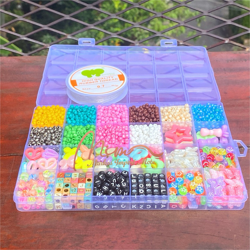 Set Manik Manik Diy + Senar Lengkap Aesthetic Gelang Cincin Kalung | Meronce Manik Anak Mainan Edukasi Termurah Bisa