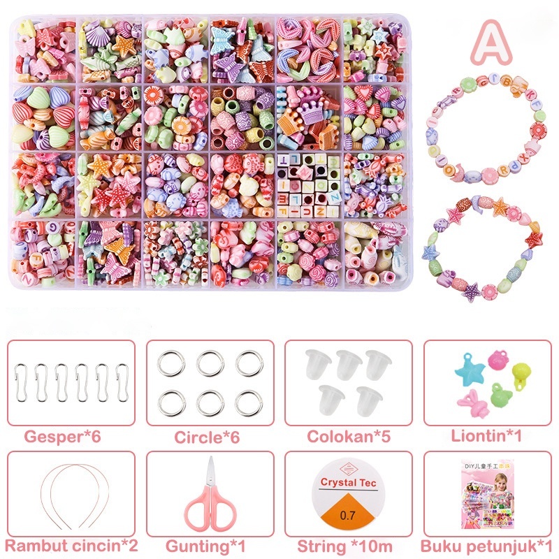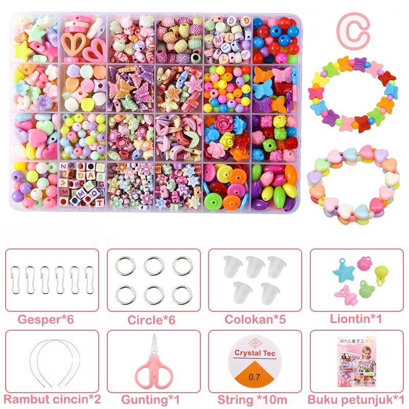 24 Aksesoris Kalung Manik-Manik Diy Kalung Manik-Manik Anak Perempuan Kotak Manik-Manik Kotak Cincin 3D Gelang Kalung Pu