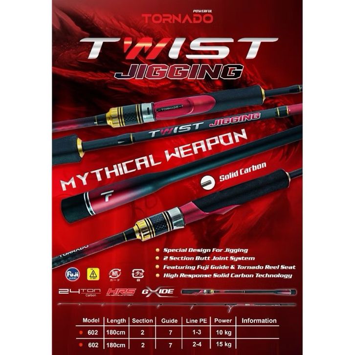 Joran Pancing Tornado TWIST JIGGING 180cm PE 1-3 & 2 - 4 Hi-Carbon Solid HRS Blank Fuji