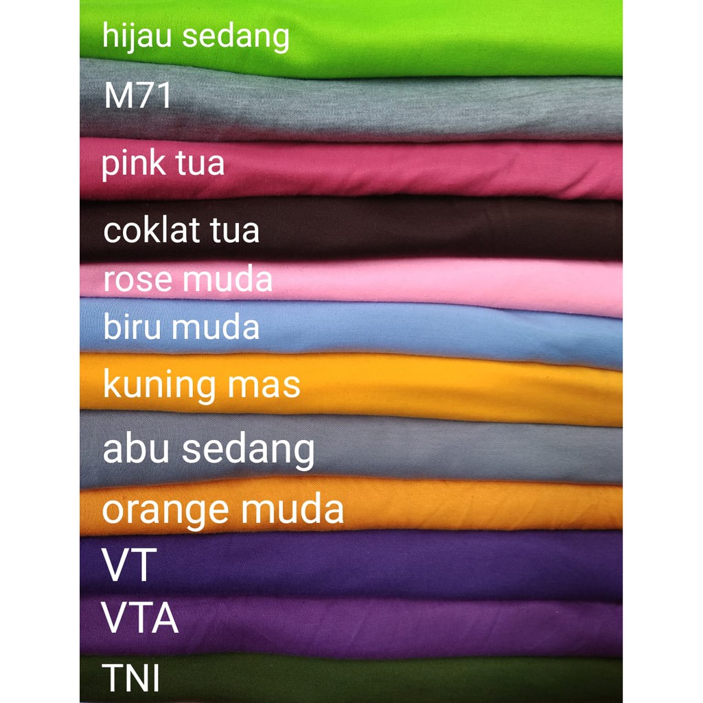 Abu sedang, Biru muda, Coklat tua, Denim, Hijau muda, Kuningmas, Misty muda m71, Merah ati, Orange muda, Turkis pikok, Pink tua, Rose muda, Tni, Tosca sedang, Ungu tua, Ungu tua anggur, Putih, Hijau fuji, Hijau super tua, Khaki, Abu tua