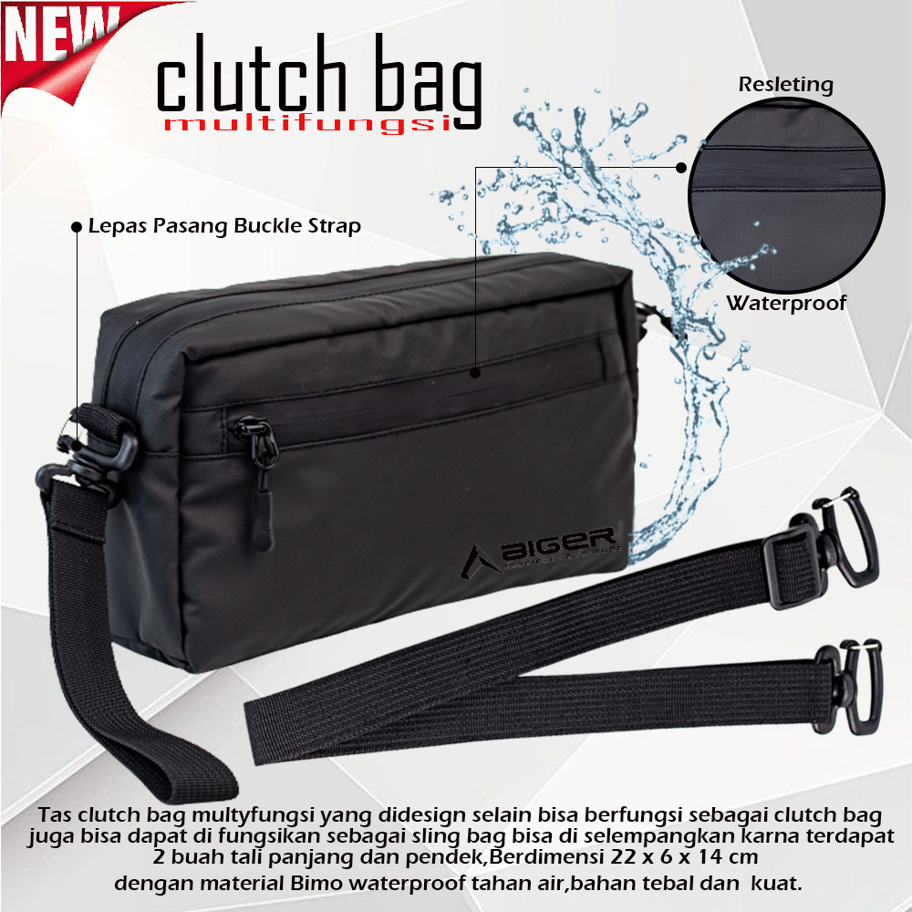 TAS SELEMPANG 3 IN 1 CLUTCHBAG PRIA & WANITA WARNA HITAM / TAS SELEMPANG MULTIFUNGSI