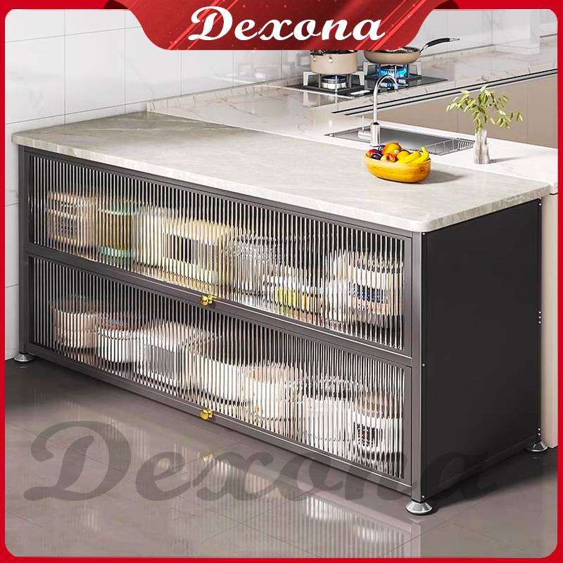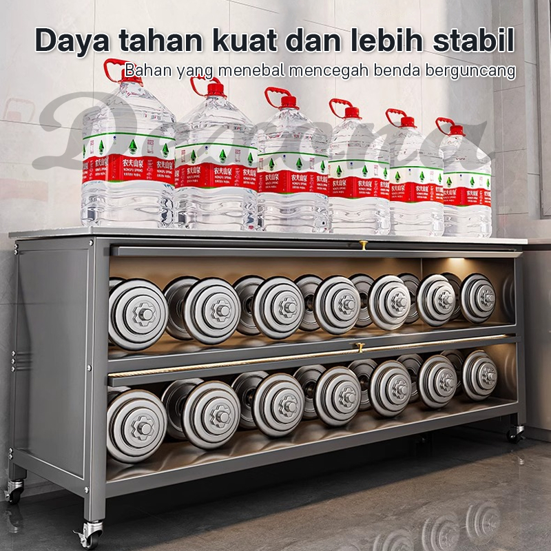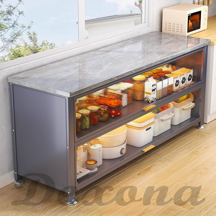 Lemari piring Dapur Serbaguna 3 Fungsi 105/85cm Lemari Besi Dapur Minimalis Meja Permukaan Marmer Tahan Lama/Rak