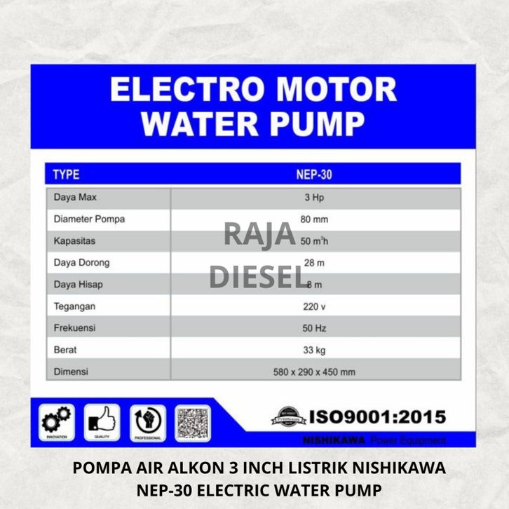 Pompa Air Alkon 3 Inch Listrik NISHIKAWA NEP-30 Electric Water Pump