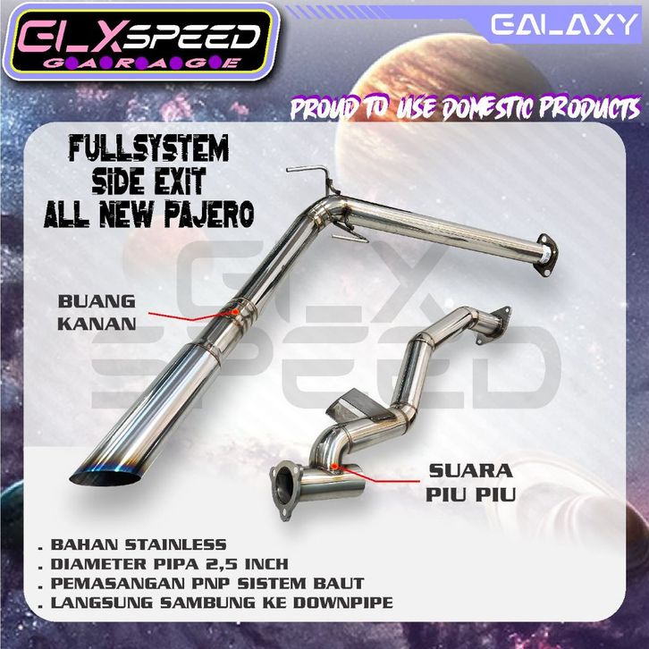 KNALPOT FULLSYSTEM SIDE EXIT DOWNPIPE EL PIU- PIU PAJERO DAKAR LAMA - EXCEED - ALL NEW PAJERO SPORT TERLARIS