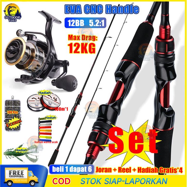 #Beli 1 Dapat 5 #Max drag 1kg Joran pancing Set 1.65M Sning Fishing Rod with 5.2:1 Reel Combo for
