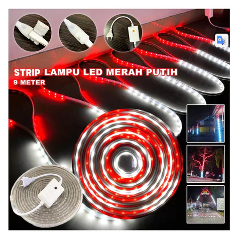 PAKET LED STRIP SELANG MERAH PUTIH 3528 2835 220V + ADAPTOR 10M/15M/20M/25/30M OUTDOOR LED STRIP 17 Agustus