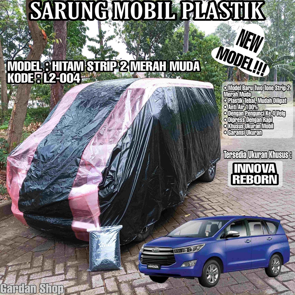 SARUNG MOBIL PLASTIK INNOVA REBORN HITAM STRIP 2 MERAH MUDA FULL ANTI AIR FULL WATERPROOF