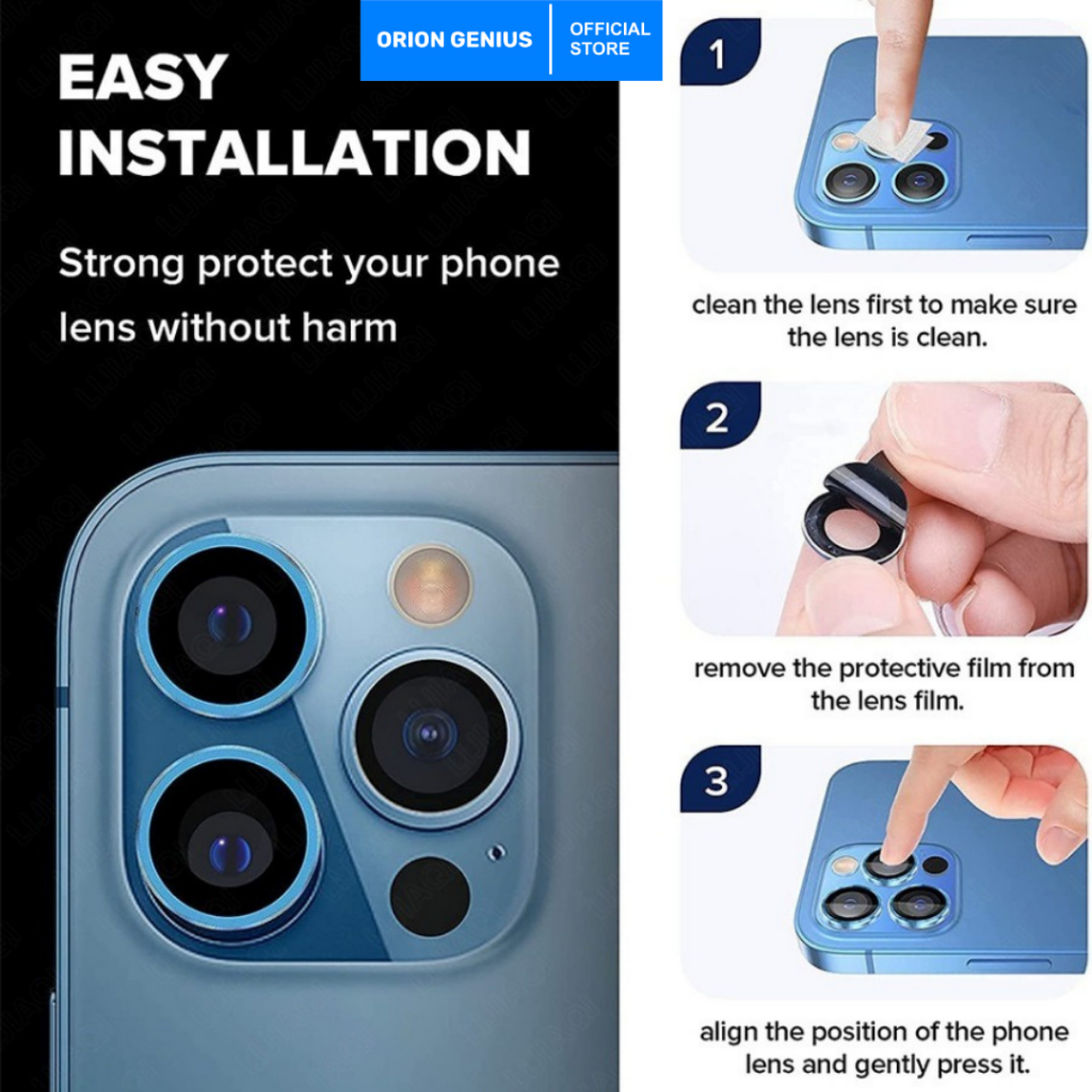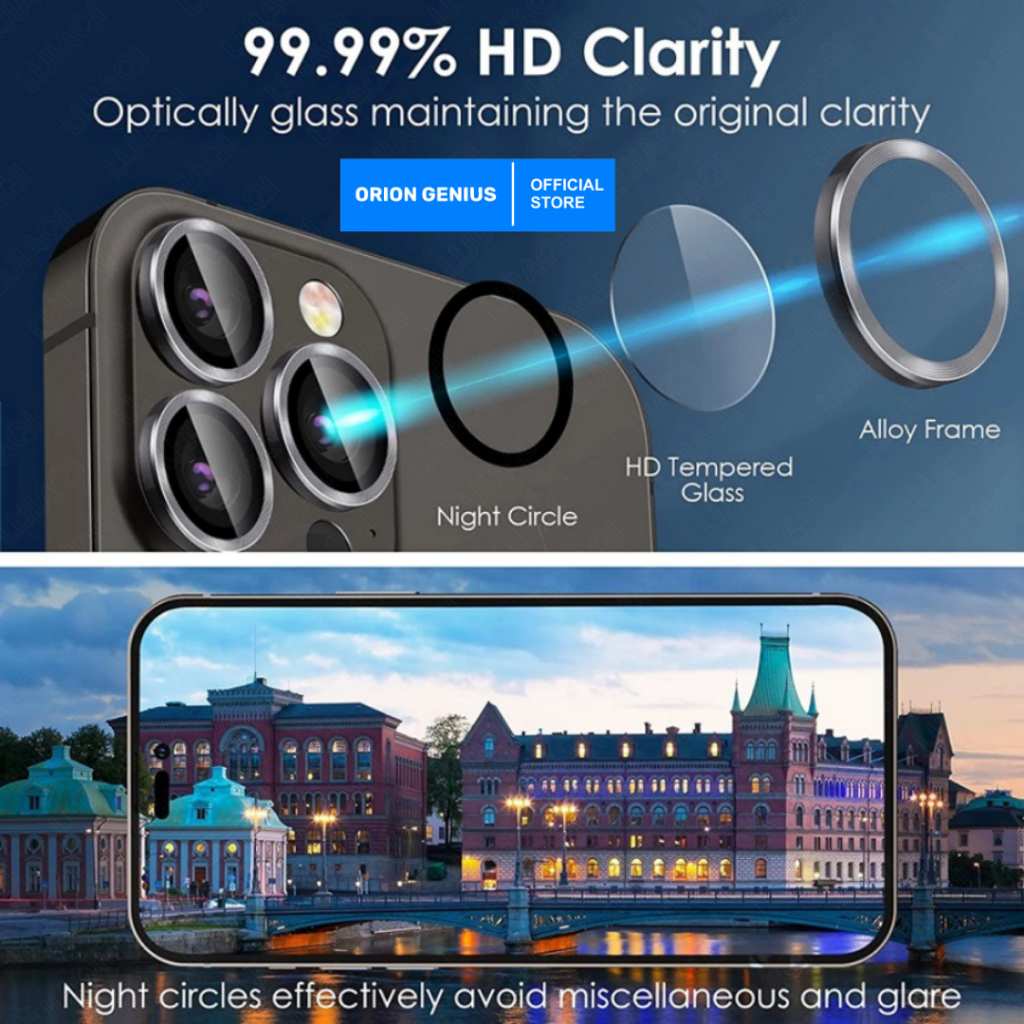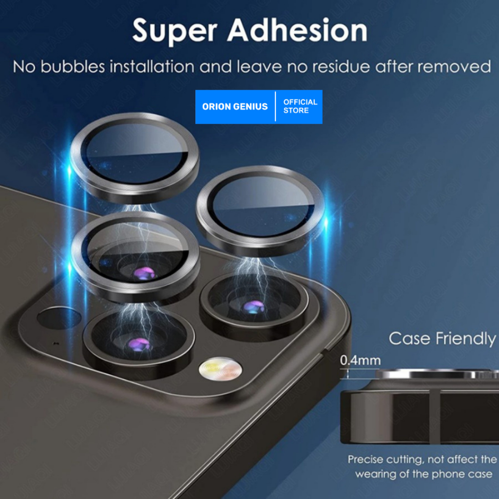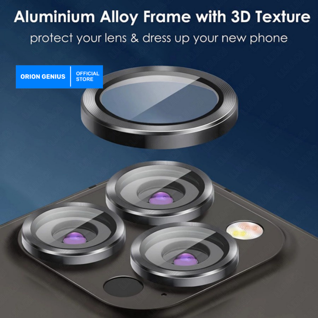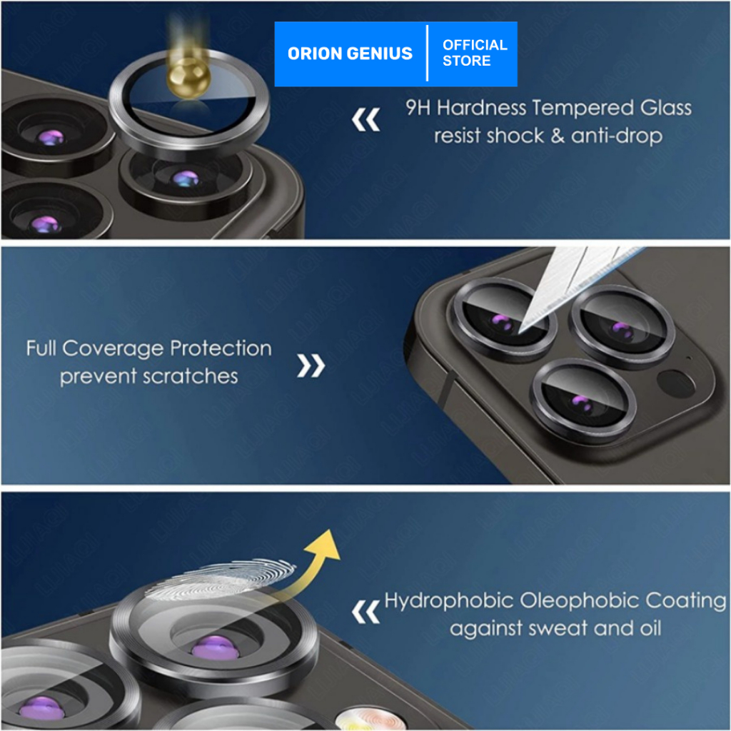 Orion Genius Pelindung Lensa Kamera Ring Metal for iPhone 15 14 13 12 11 PRO MAX Tempered Glass Camera Lens Protector