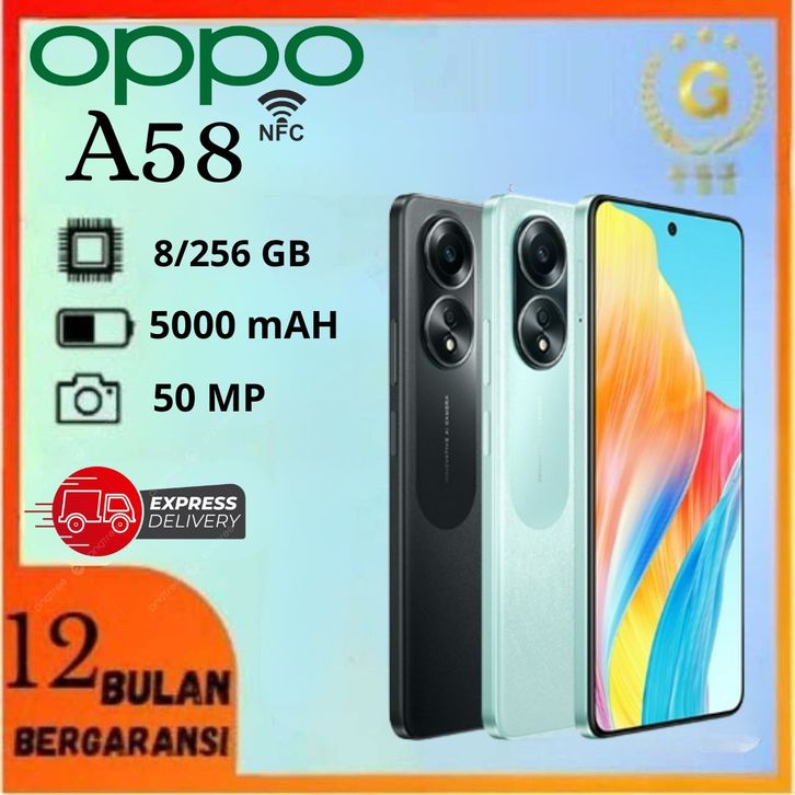 OPPO A58 NFC 8GB/256GB 5000mAh SUPERVOOC 33W, FHD+ Big Screen] NEW FULLSET GARANSI 12 BULAN