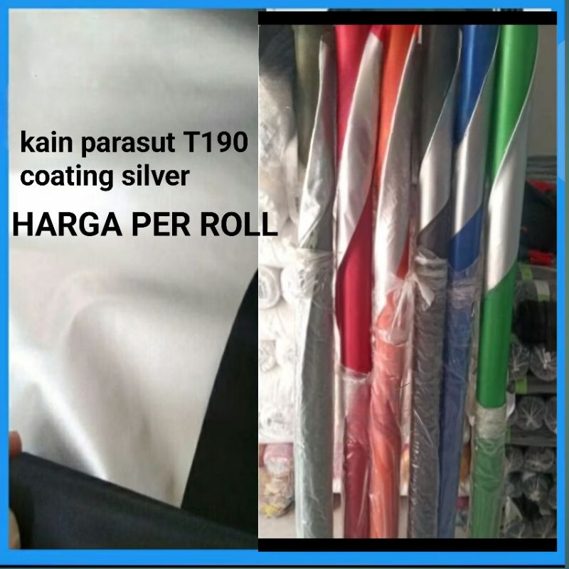 Kain bahan parasut Tafetta WATERPROOF Hitam Silver PER ROLL