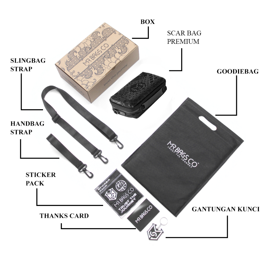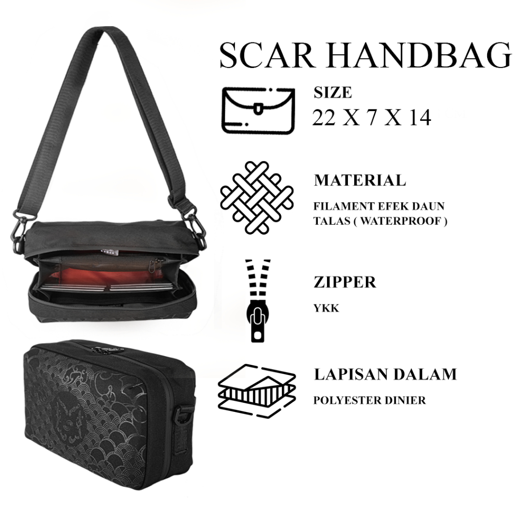 Handbag pria Scar Multifungsi Bahan Polyester Filament Anti Bara Hitam Sablon Grapis - Waistbag Mr bags co handbags