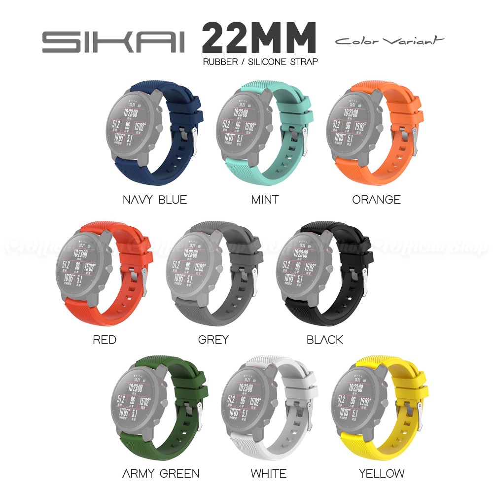SIKAI Silikon Tali Strap for AMAZFIT GTR 4 2 3 47MM / PACE STRATOS 3 / TICWATCH PRO / Realme / Mi Watch S1 Sport Silicone 22MM