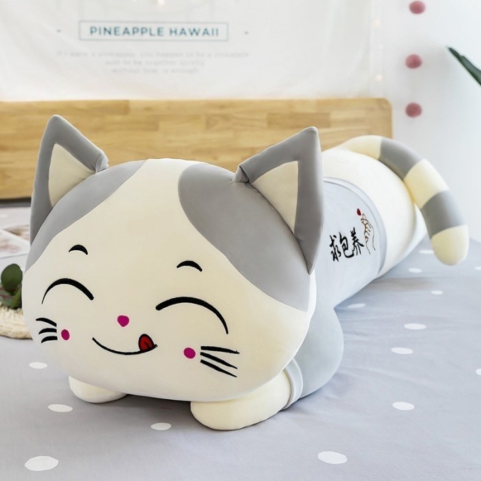 Bantal Guling Kucing Lying 50cm Bahan Plush Premium Kado Hadiah Anak-Anak Gift