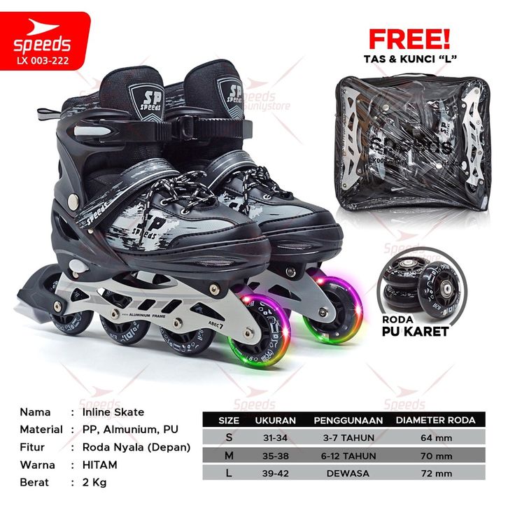 SPEEDS Sepatu Roda Pria Dewasa Anak Remaja New Inline Skate Mode Bajaj Comfortable Unisex 003-222