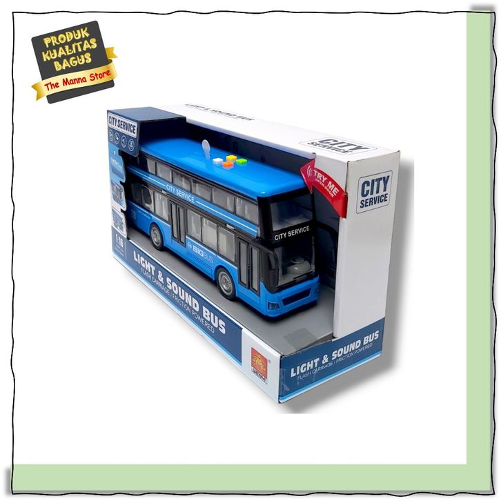 Mainan Anak City Service Double Decker Bus Blue with Sound and Light Friction Powered 1:16 Bis Tingkat Susun Kualitas Ba
