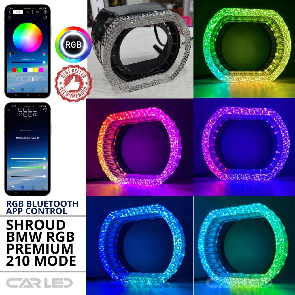 lampu Biled Shroud Projector BMW Sport RGB Bluetooth 210 Mode 3 Inch Shroud RGB 3 Inch dan 2.5 inch