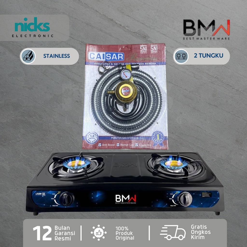 BMW Kompor Gas 2 Tungku Stainless Teflon SNI KG-882T