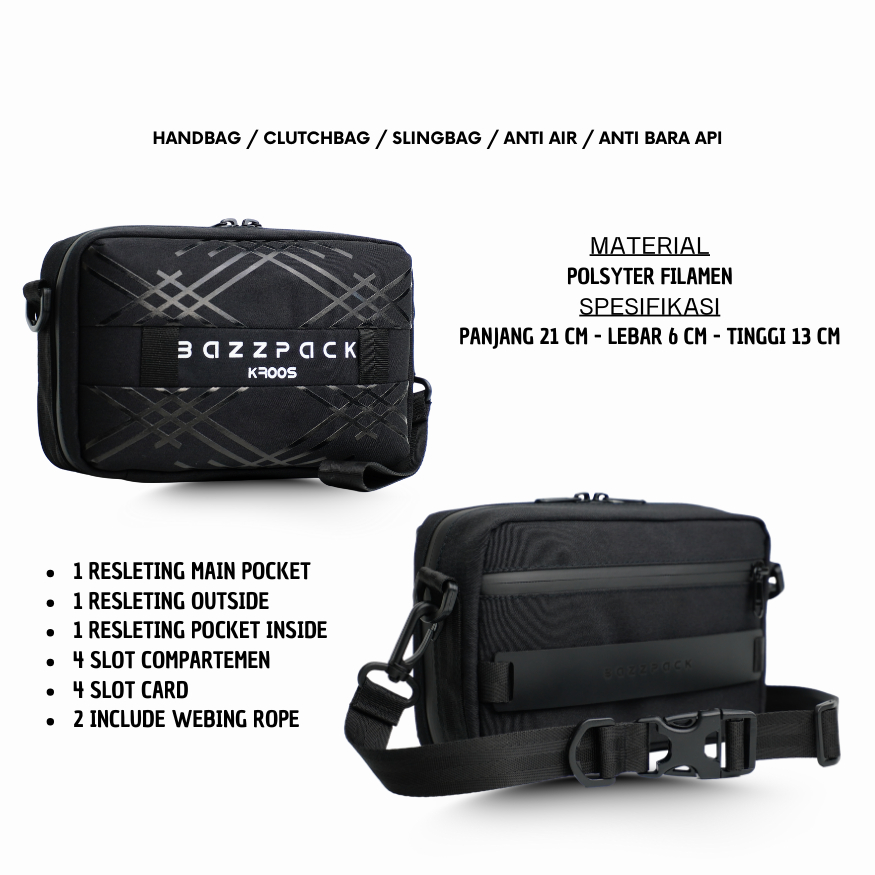 Bazzpack KROOS Tas Handbag Clutchbag Slingbag Filamen Anti Bara Api Dan Anti Air Slempang Pria