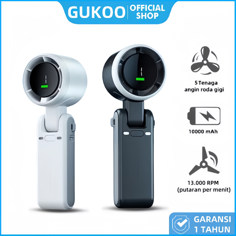 GUKOO Kipas Portable Rechargeable 10000mAh - 1-5 Speed Adjustable - High Speed Foldable Fan 13000 RPM - Anti Panas Travel