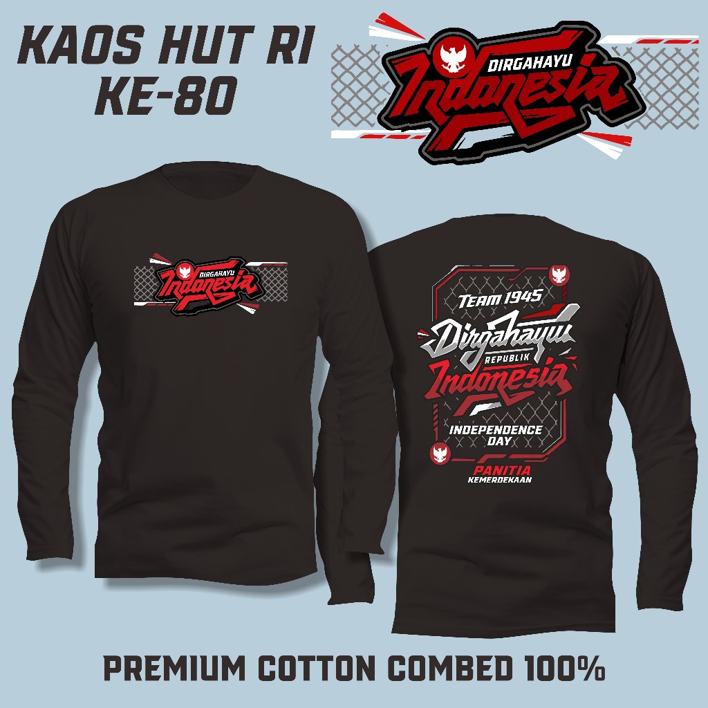 KAOS HUT RI ke 80 lengan PANJANG – Baju 17 Agustus 2025 Cotton Combed 100 PERSEN | Kaos Panitia Kemerdekaan
