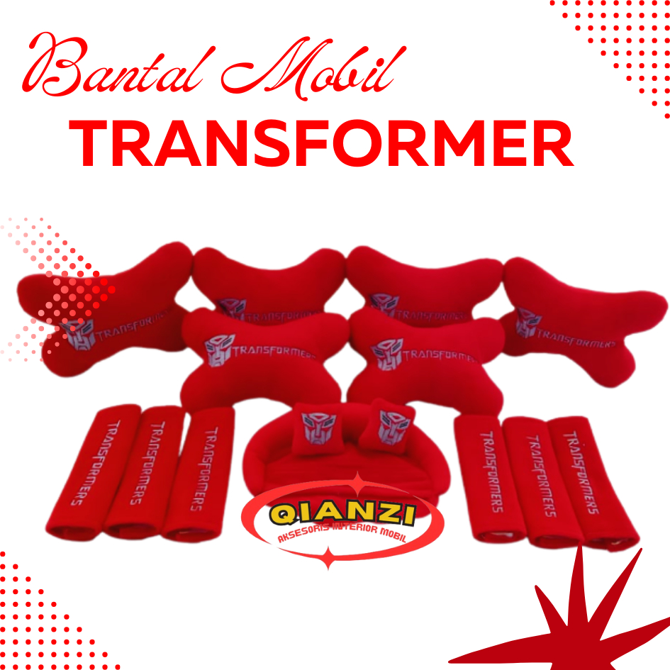 CARS SET BANTAL MOBIL TRANSFORMER LEMBUT DAN HALUS BANTAL ISI 12IN1 SANDARAN LEHER KEPALA