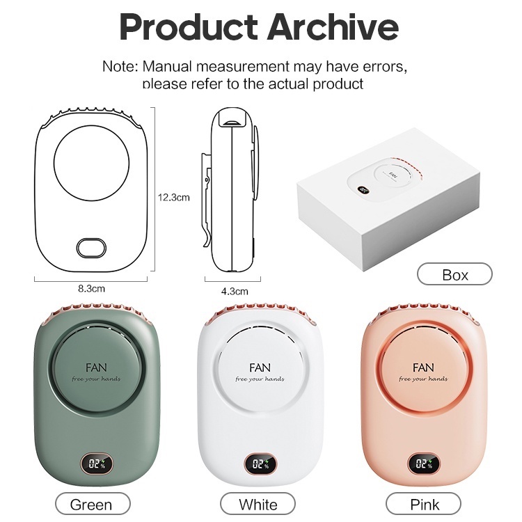 Kipas Angin Mini Portable Hanging Neck Fan 2000mAh Model Gantung Leher Rechargeable Battery Display USB