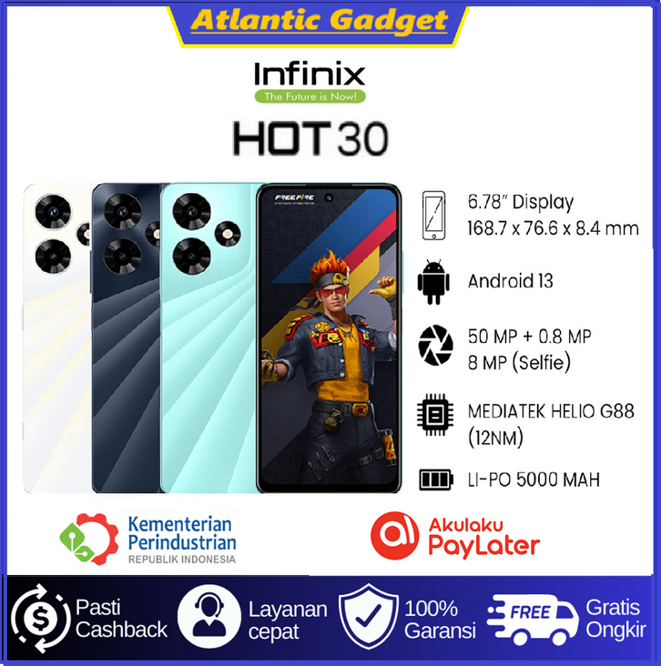 Infinix Hot 30 RAM 8/128GB & 8/256GB | MediaTek Helio G88 | Kamera 50MP | Baterai 5000mAh 33W | Layar 6.78" 90Hz | NFC