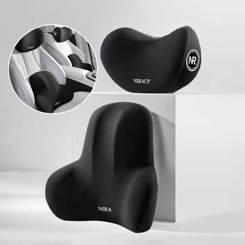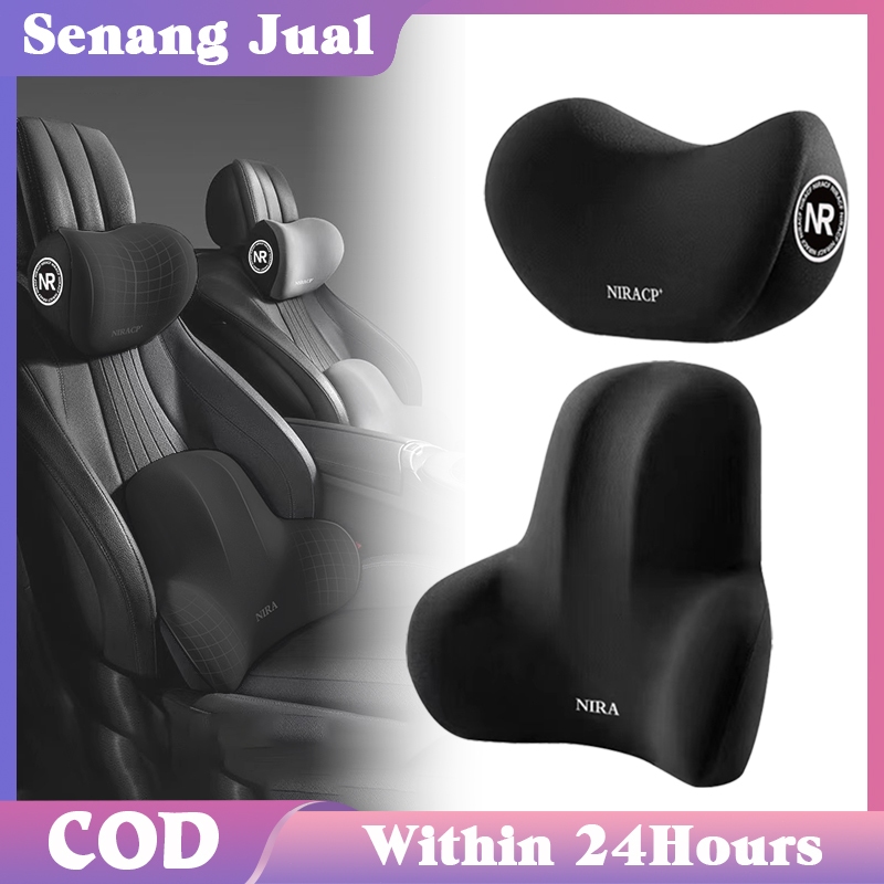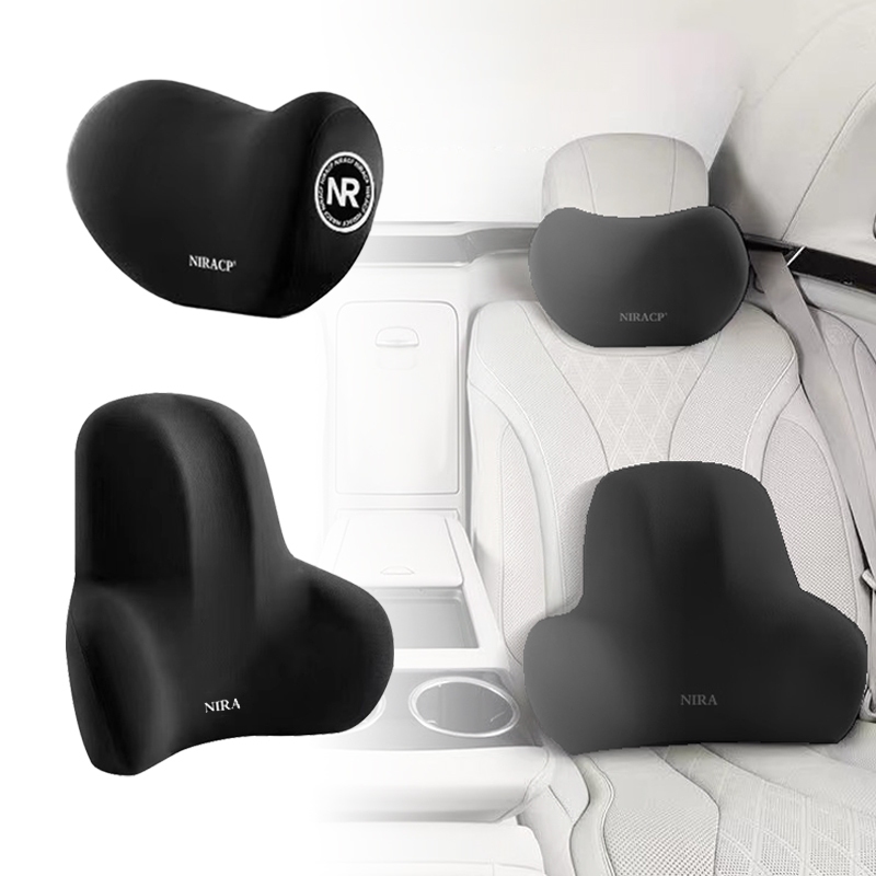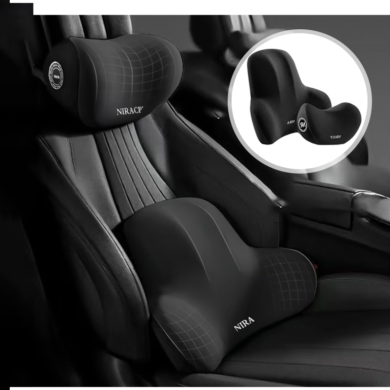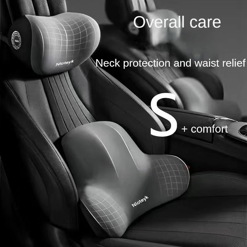 BANTAL MOBIL LEHER KEPALA SET DESAIN KELILING 6D BAHAN BUSA MEMORI BANTAL MOBIL SANDARAN KEPALA LUMBAR MOBIL