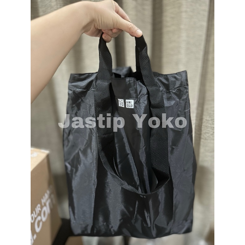 Ready Original Packable Tote Bag Uniqlo Bahan Parasut Hitam