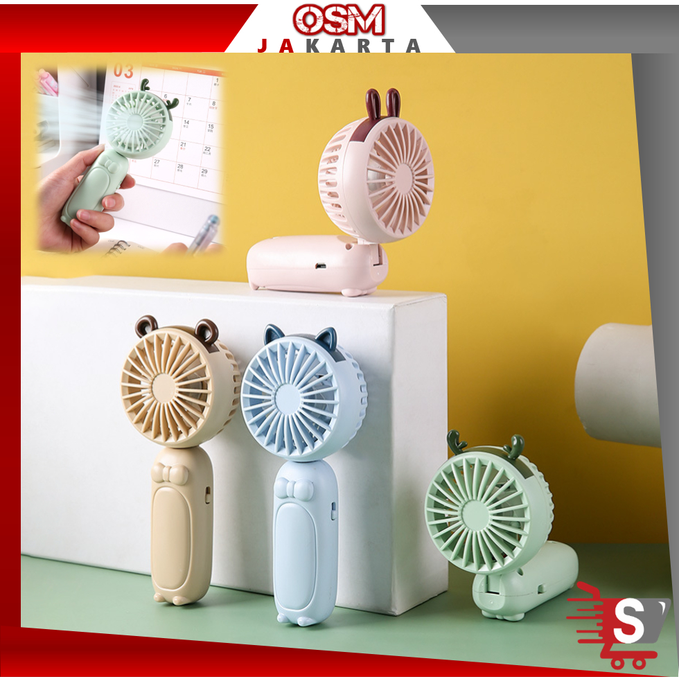 OSM JKT Ki5980 Kipas Angin Mini Portable USB Rechargeable / Kipas Angin Portable Karakter Kelinci & Kucing / Kipas Tangan Mini