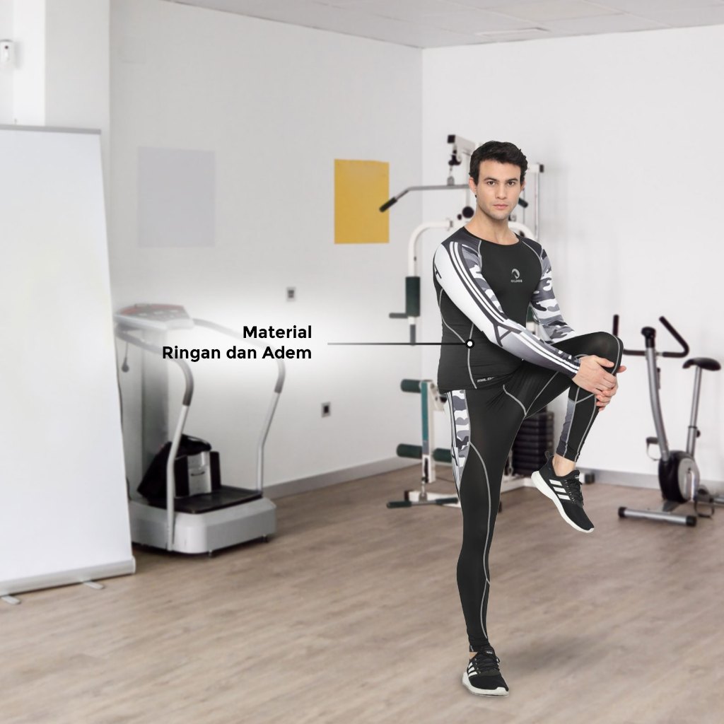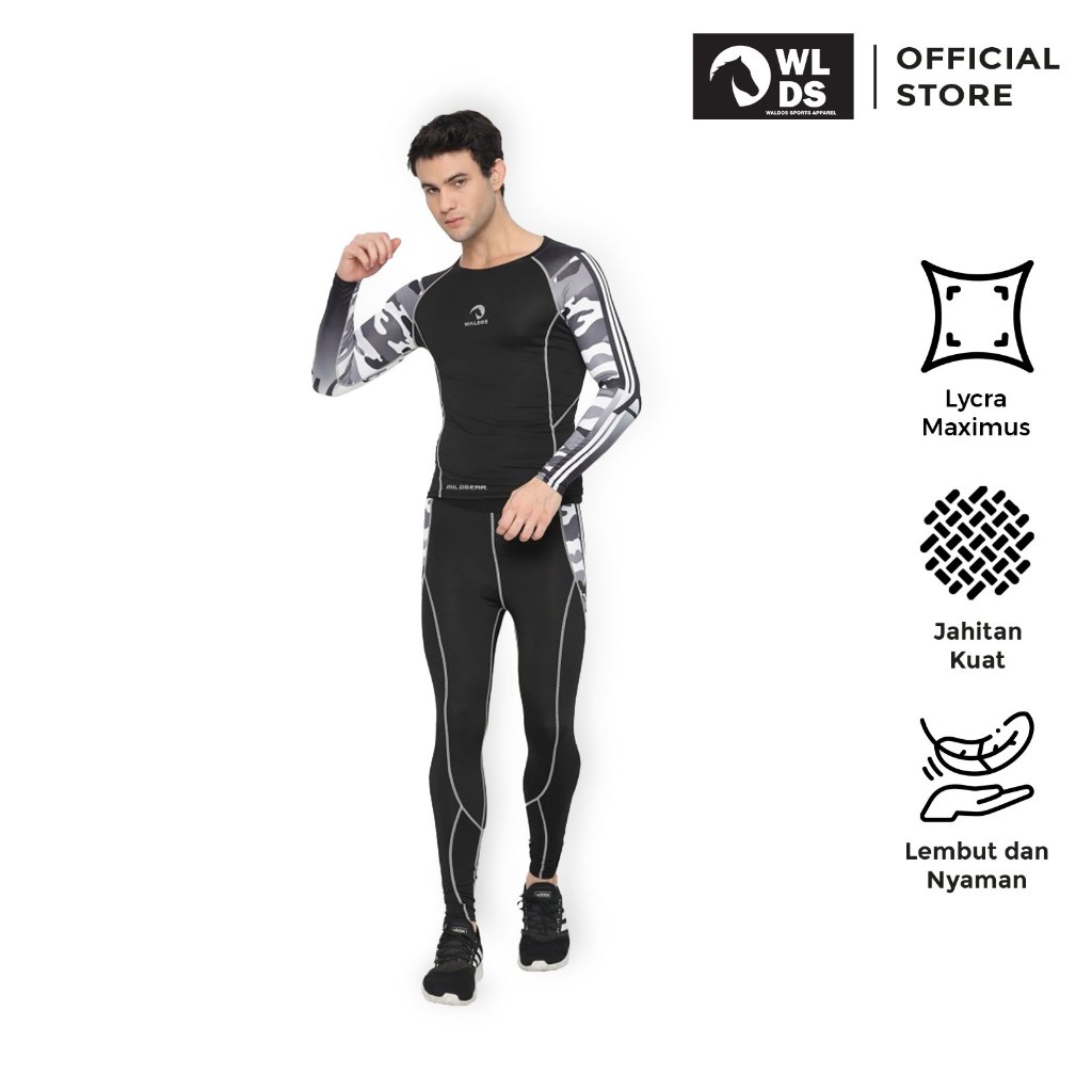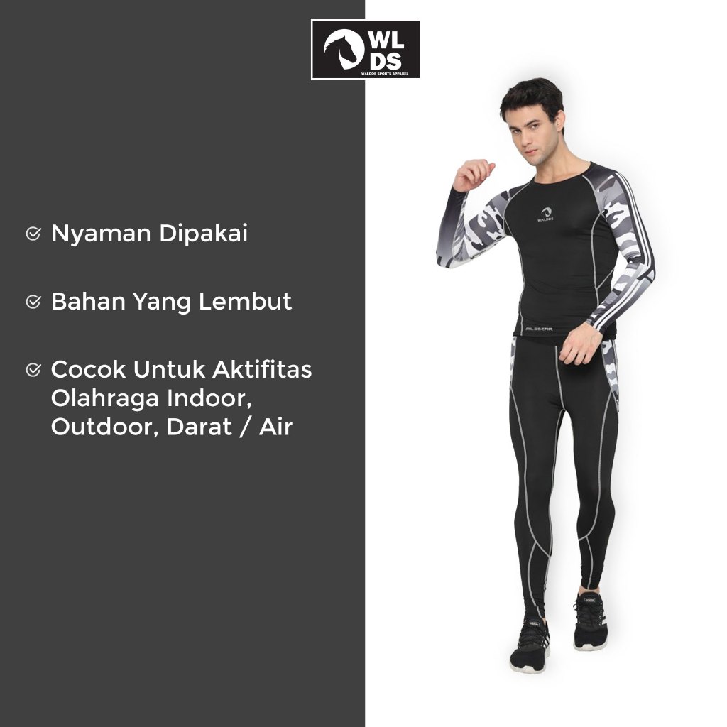 WALDOS SET BASELAYER BAJU DAN LEGGING PRIA SWOOSH TIGHT COMPRESSION PANTS PREMIUM LYCRA DAN SUBLIME BLACK ARMY
