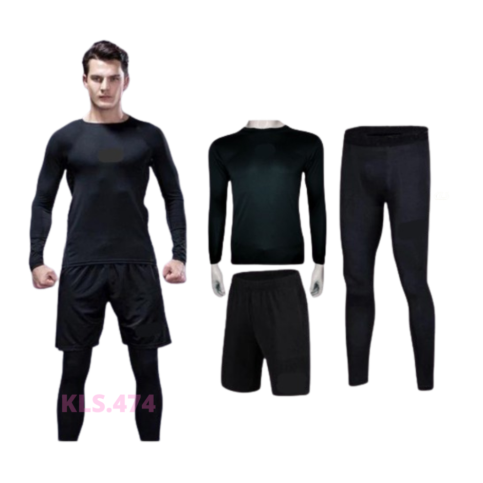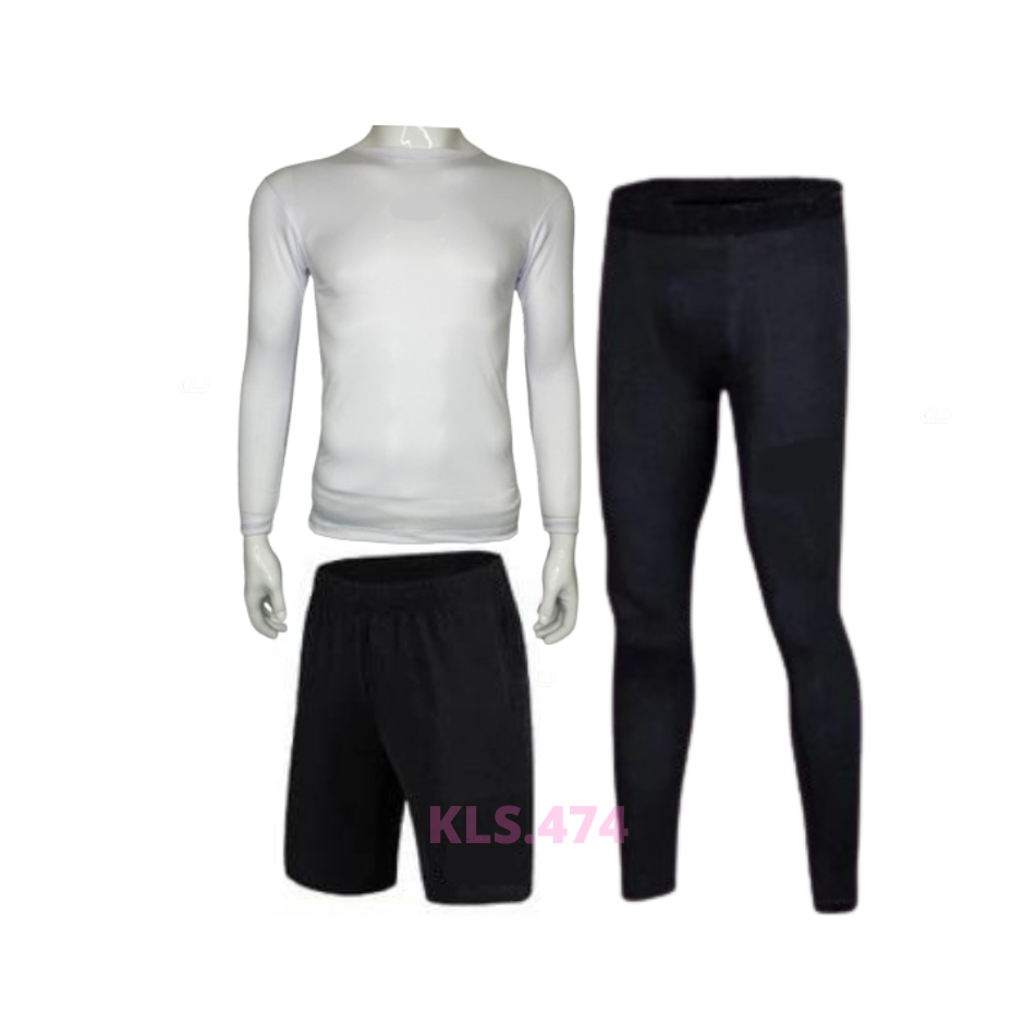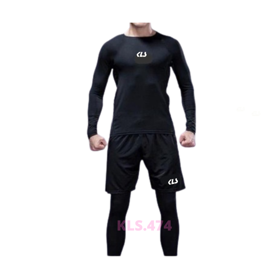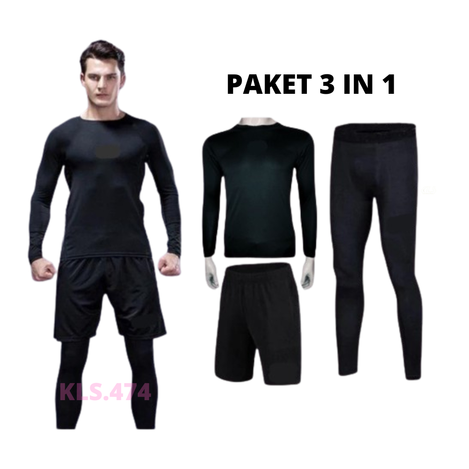 KLS 3-IN-1 PAKET SETELAN MANSET OLAHRAGA PRIA WANITA BASELAYER LEGGING CELANA PENDEK