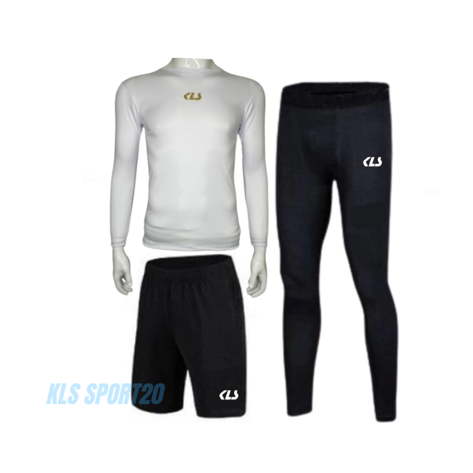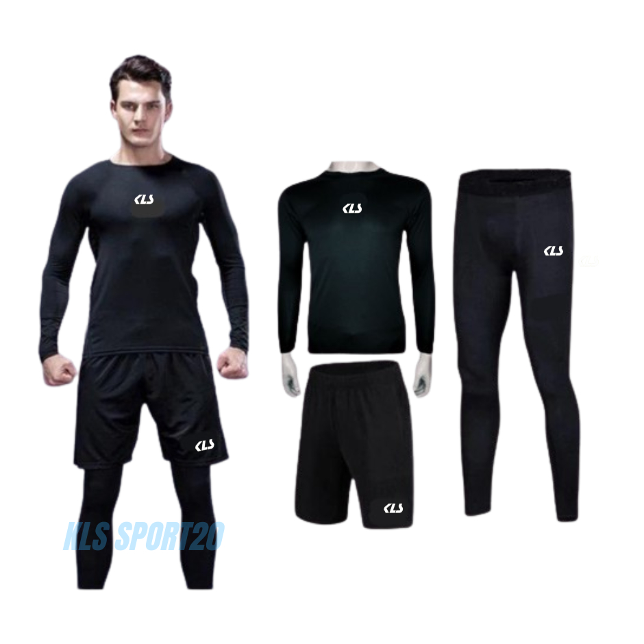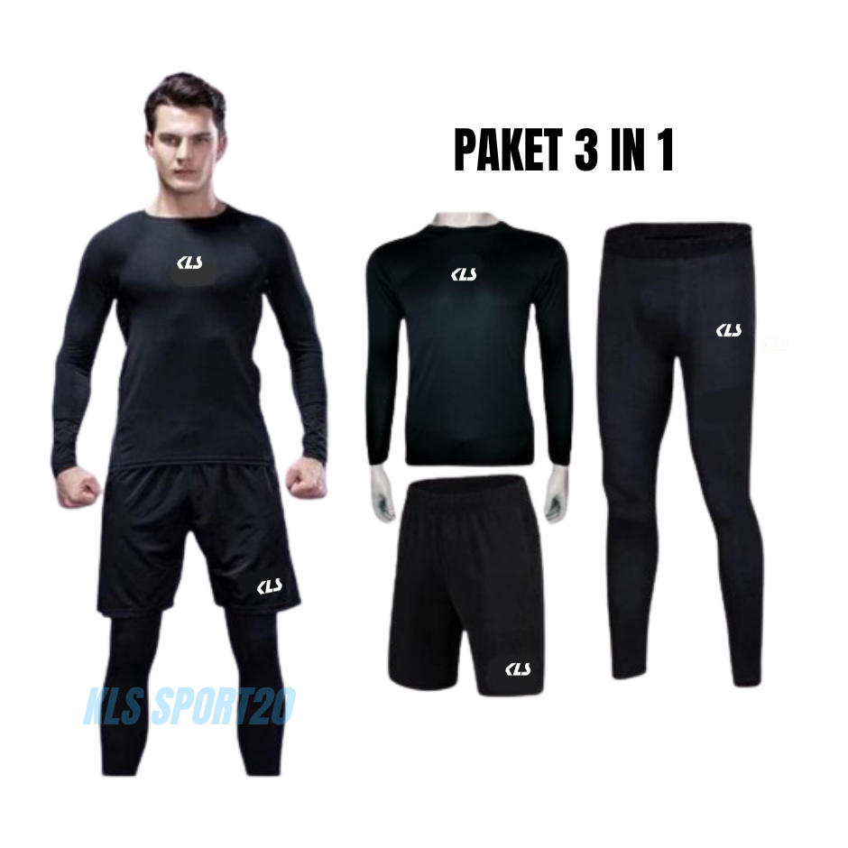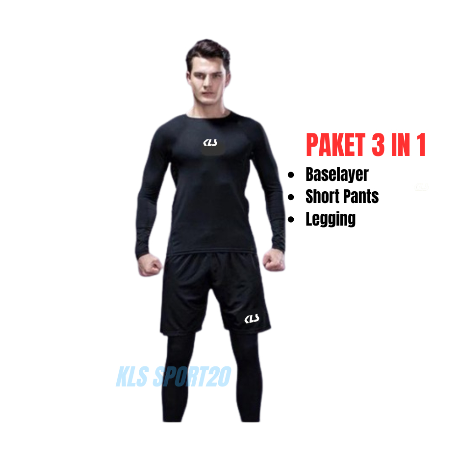 KLS 3IN1 PAKET SETELAN OLAHRAGA PRIA WANITA MANSET LENGAN PANJANG BASELAYER LEGGING CELANA PENDEK