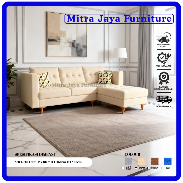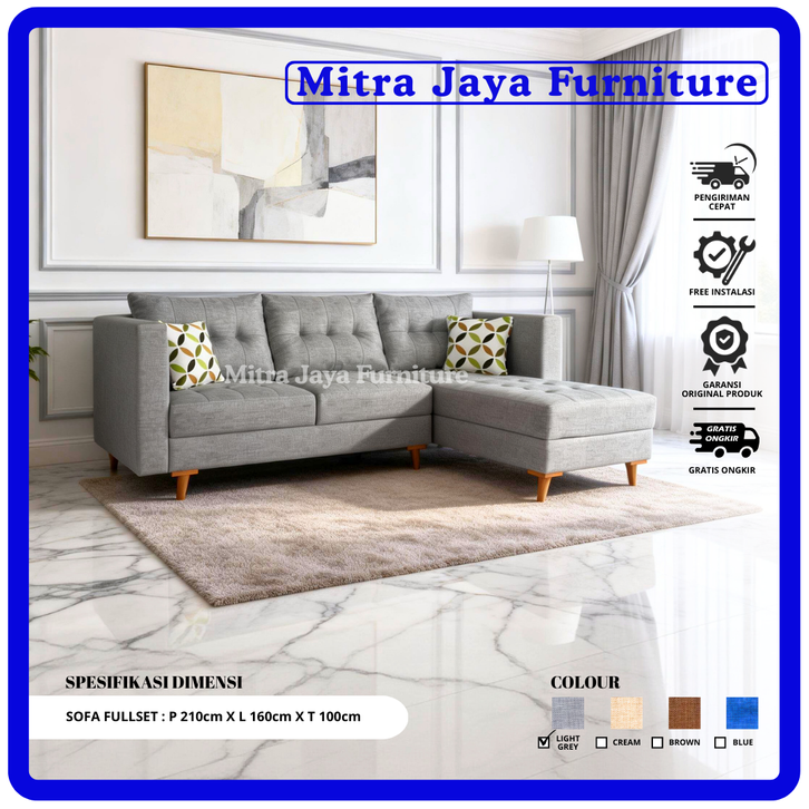 Free Ongkir Sofa L Santai Sett Premium Simple Elegan Empuk Bahan Soft/ Mitra Jaya Furniture