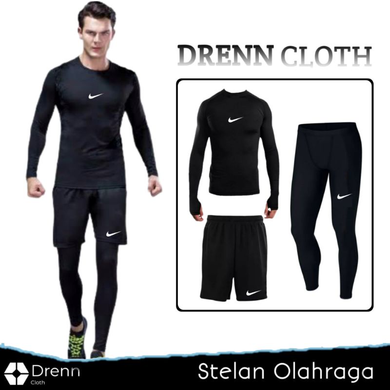 FULL SET BAJU MANSET BASELAYER PRIA LEGGING PANJANG DAN CELANA PENDEK LARI OLAHRAGA GYM JOGGING RUNNING TRAINING