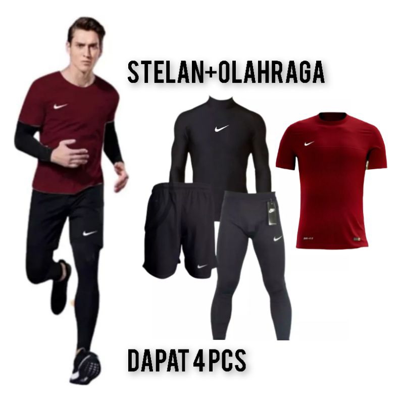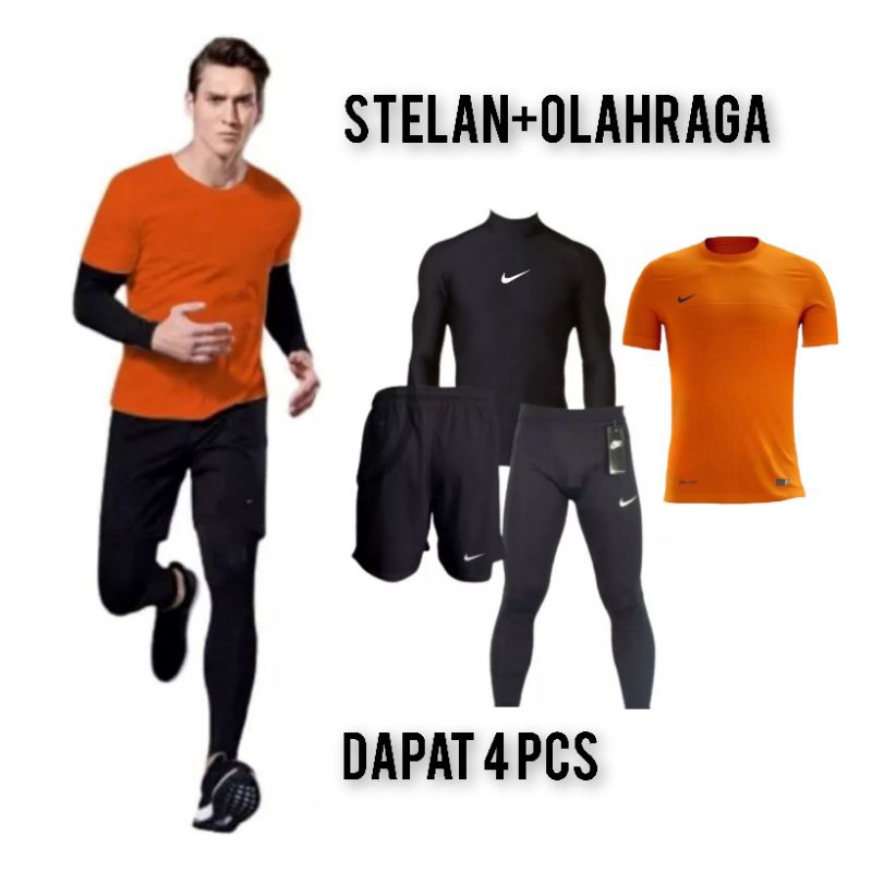 4 IN 1 BAJU JERSEY BAJU MANSET LENGAN PANJANG CELANA OLAHRAGA DAN LEGGING PANJANG STELAN FUTSAL PRIA