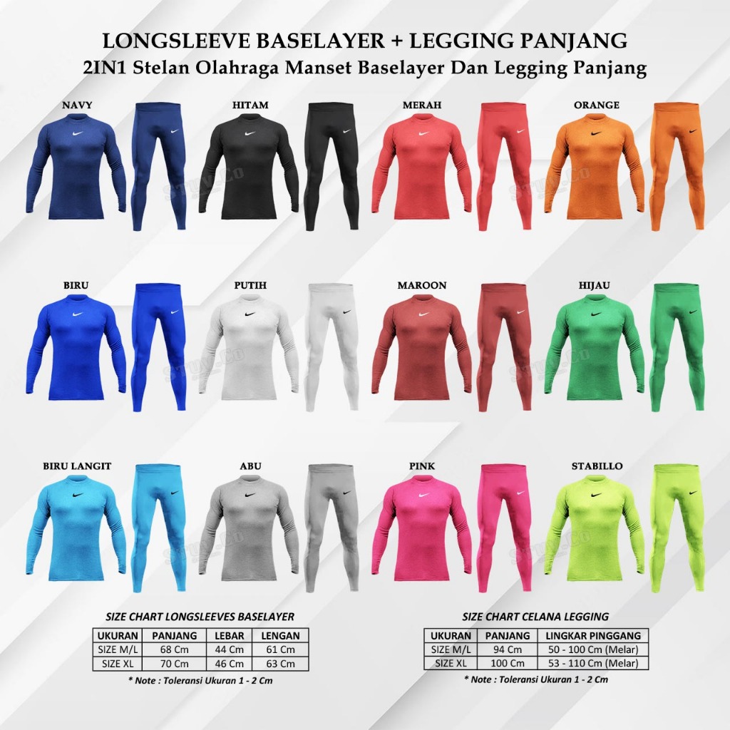 2IN1 MANSET LENGAN PANJANG BASELAYER LONGSLEEVE TANPA LUBANG JARI CELANA LEGGING PANJANG OLAHRAGA PRIA WANITA
