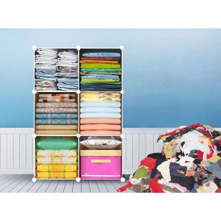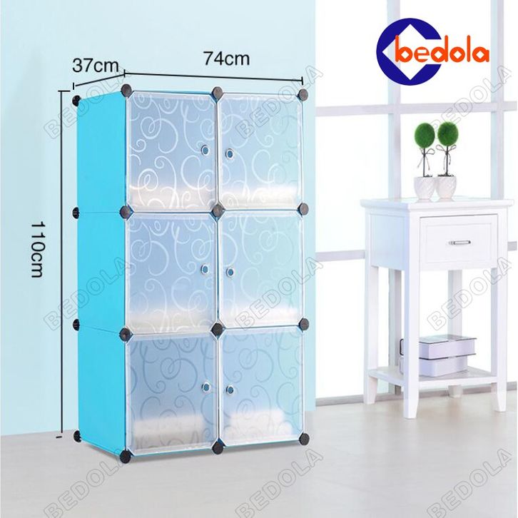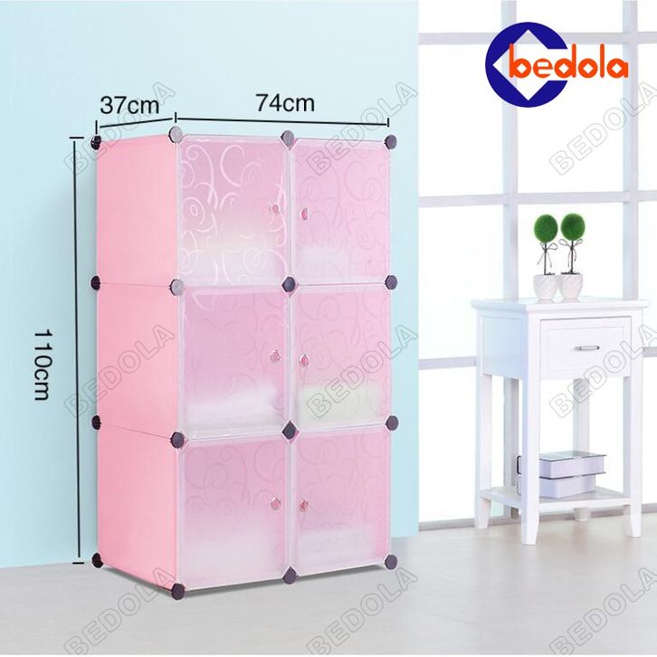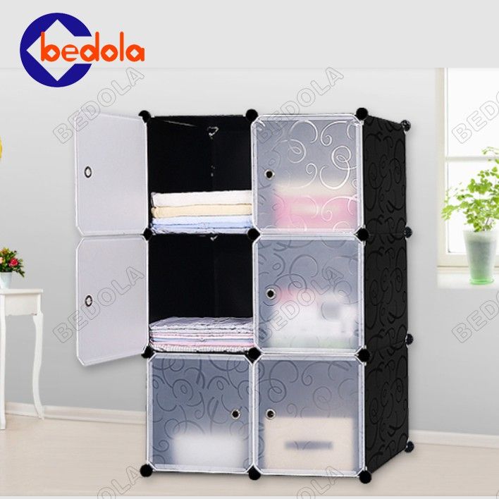 Bedola Lemari pakaian portable rak serbaguna susun plastik lemari baju 6 pintu/kotak