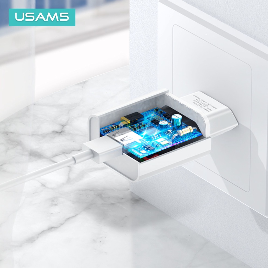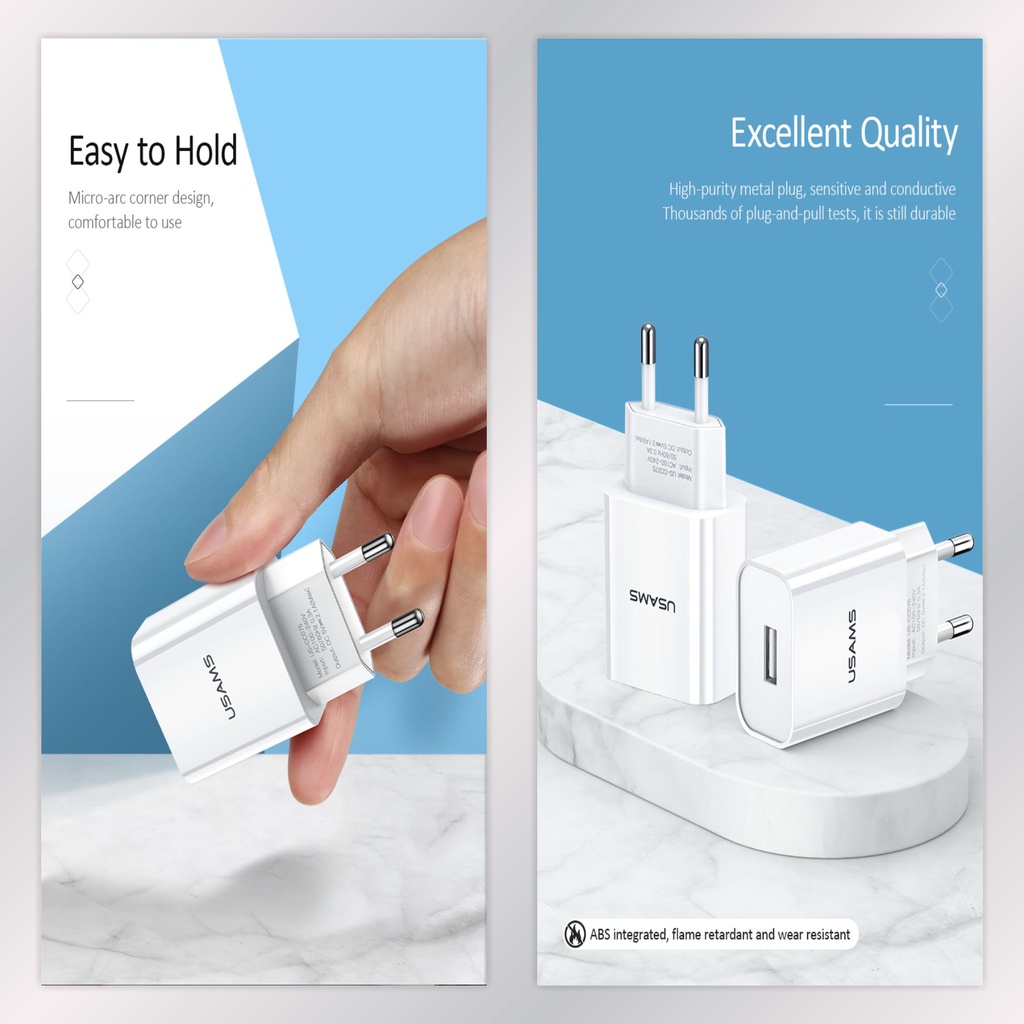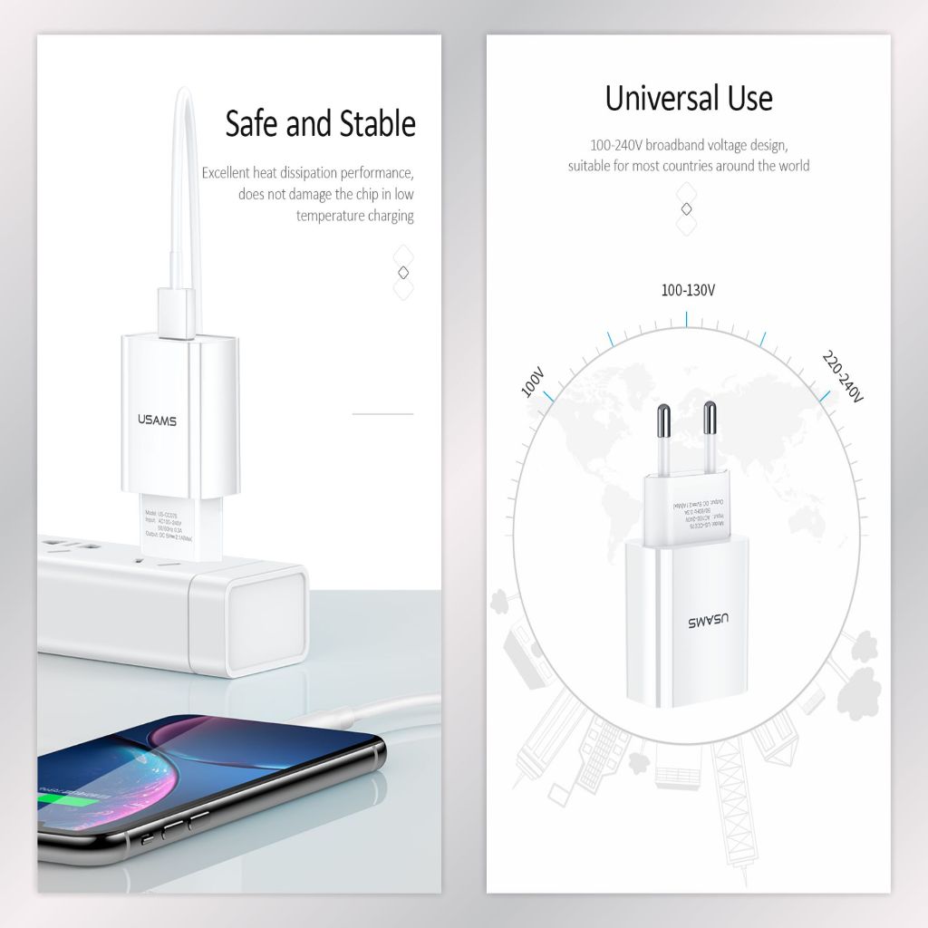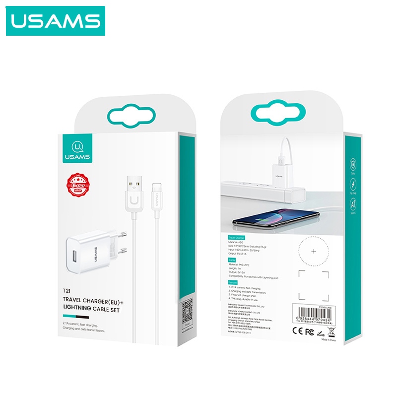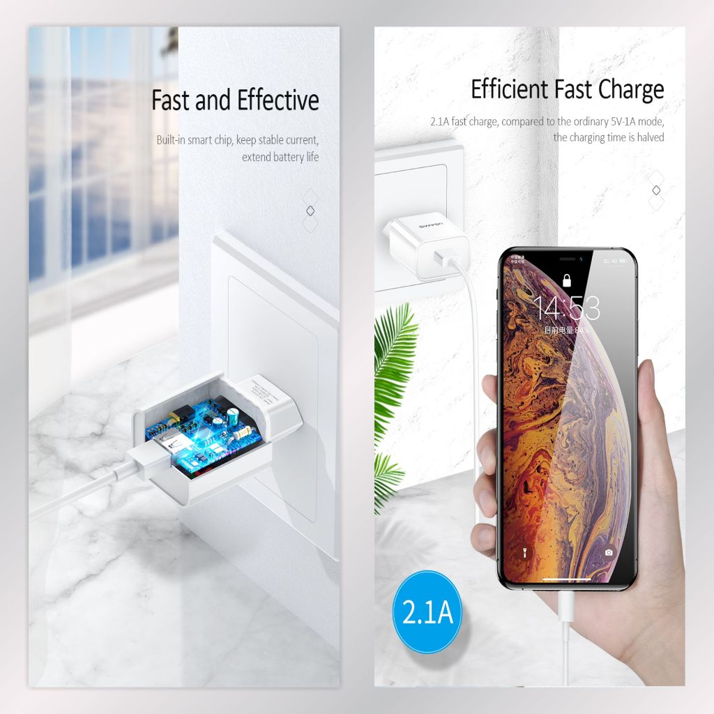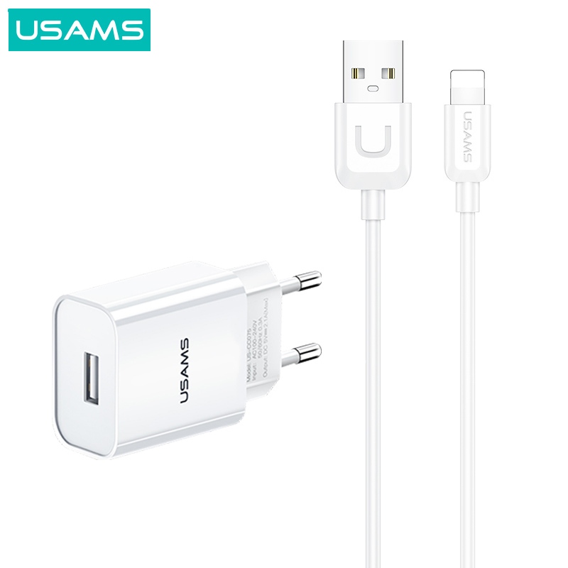 USAMS T21 Adaptor Kepala Charger + Kabel iPhone / Lightning Set Fast Charge 2.1A