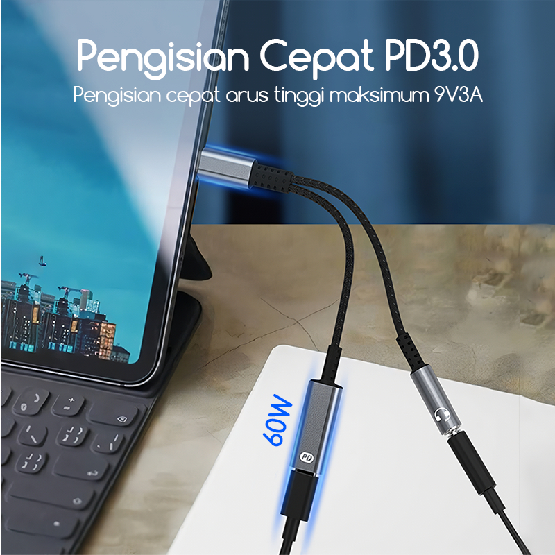 Bonkyo Adaptor PDQC60W Audio Splitter Type C to 2 Type C Support Charging & Listen