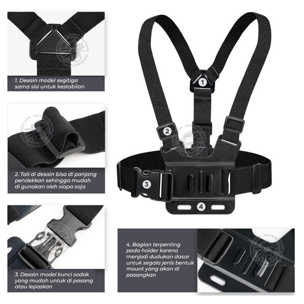 Chest Strap EVOGRIP AK10 Body Belt Holder Hp Dada Sabuk Tali Dudukan Handphone untuk Vlog aman anti getar - DISTRIBUTHOR